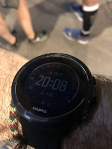 Notre cher Christophe, avec son sourire habituel, nous annonce le programme !!! Direction les escaliers de Nicolas De Lange bien connus des Lut de Lyon pour tester la montre avec un fractionné 30×30 et ceci deux fois.