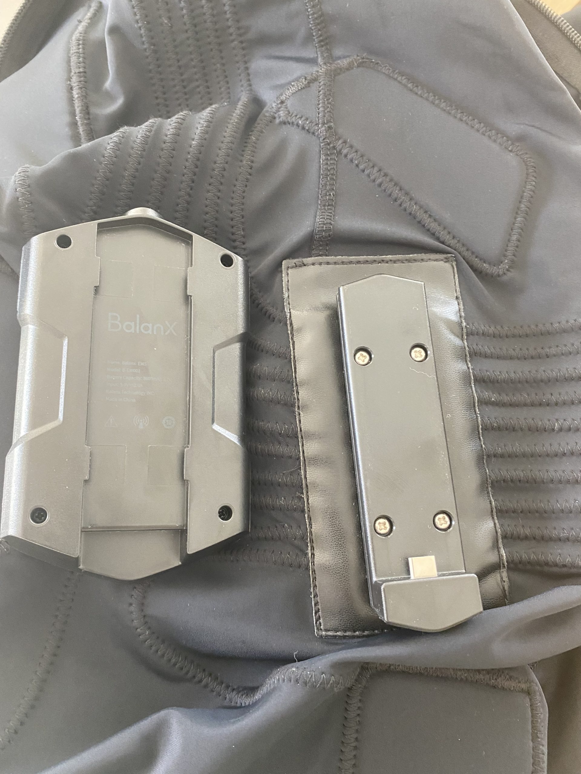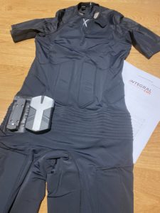 La combinaison est simple à enfiler quand on a un peu l’habitude. Pour ma part, la taille choisie était parfaite. Attention, il faut prendre prendre les mesures prévues dans la grille des tailles pour avoir une combinaison parfaitement ajustée à votre morphologie. Le boitier intelligent vient se clipser sur le support prévu au niveau des hanches.